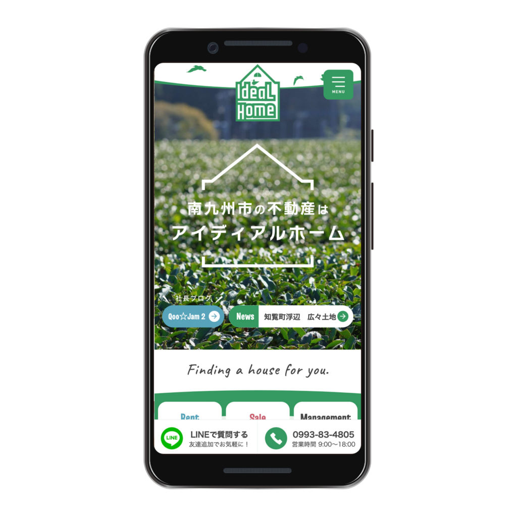 SUMMARY : 南九州市知覧町の不動産会社アイディアルホーム様の不動産検索サイト構築のお手伝いをさせて頂きました。特徴的なロゴからレイアウトをイメージし、ご利用のお客様に安心感と親しみを感じてもらえるような不動産サイトを目指して設計しました。賃貸と売買からなる検索システムも高機能に仕上げ、物件を気に入ったお客様がページから離脱せずにフォーム送信ができる仕様としています。